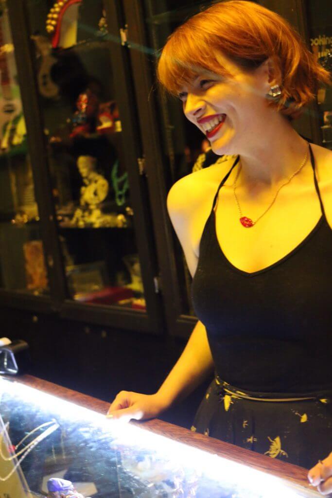 It’s a clever portal, part time machine, that makes the entry into the vintage perfume bottle and peacock feather decorated space seem less jarring.