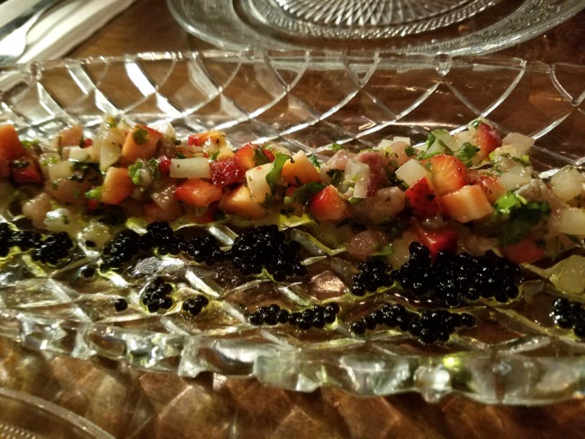 THREE: Mediterranean ceviche w/ strawberries, faux seaweed based roe