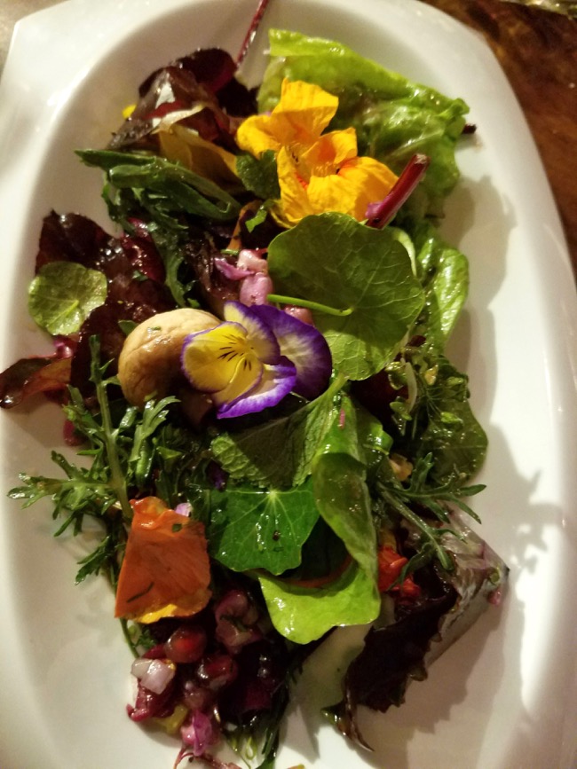 FIVE: Fresh-picked salad with pansies and local wildflowers and mushrooms