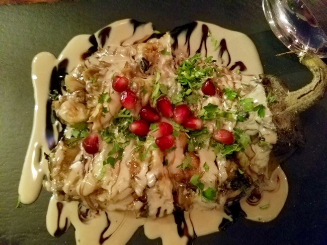NINE: Fire roasted smoked eggplant w pomegranate and tahini