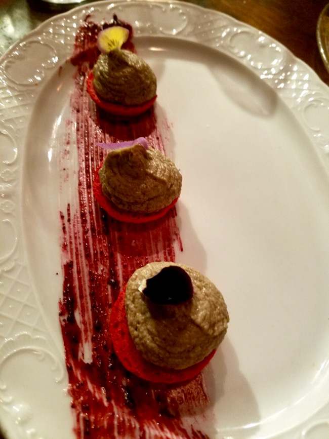 ELEVEN: Liver pate served on a macaron, w/cranberry sauce