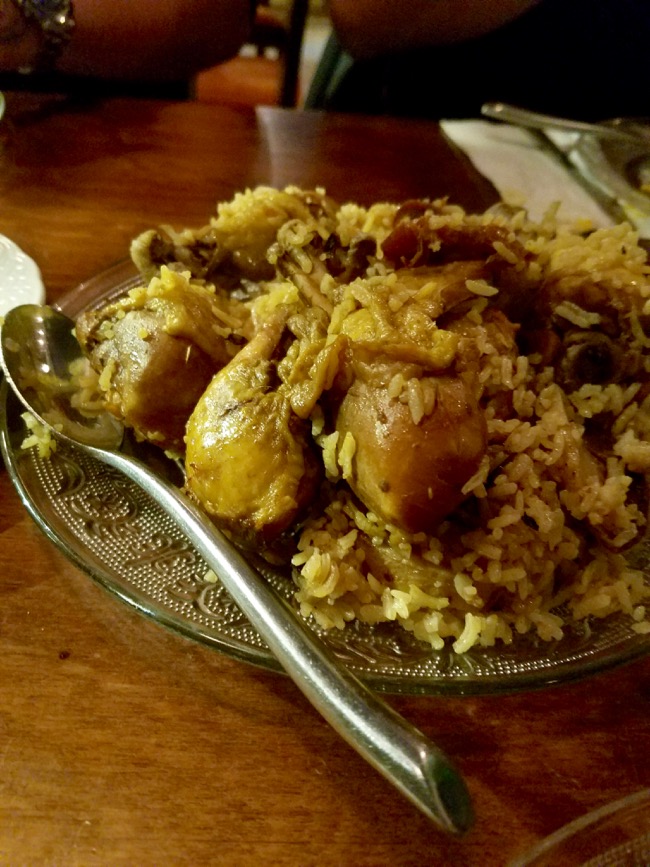 FIFTEEN: Maklubah — Saffron scented slow cooked chicken and rice. There is a bridal ceremony associated with this dish in which the contents of a large pan are reversed and revealed on a platter, and wishes are made.