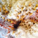 Last month I wrote about how much I was loving working with Lion Brand’s Silk Ribbon Yarn. This stuff is produced in small batches from sari silk and you never know what colors you will get, which is a lovely stashbusting design challenge for me. I received two hanks of the Lion Brand Silk Chiffon…
