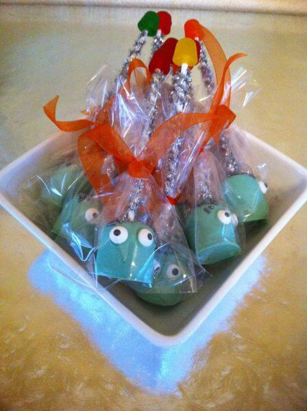 - When all the pops have cooled and hardened (a couple of hours but faster if you put them in the fridge) you can add the final touches and wrap.