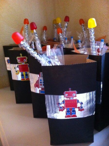 For the treat bags at my son’s party I wanted to make something special, and “Robot”. I first started making Marshmallow pops as a way of using up the extra melted chocolate when I made cake balls. At some point I realized that it was far easier than making cake balls and guess what, my kids *adore* marshmallows.