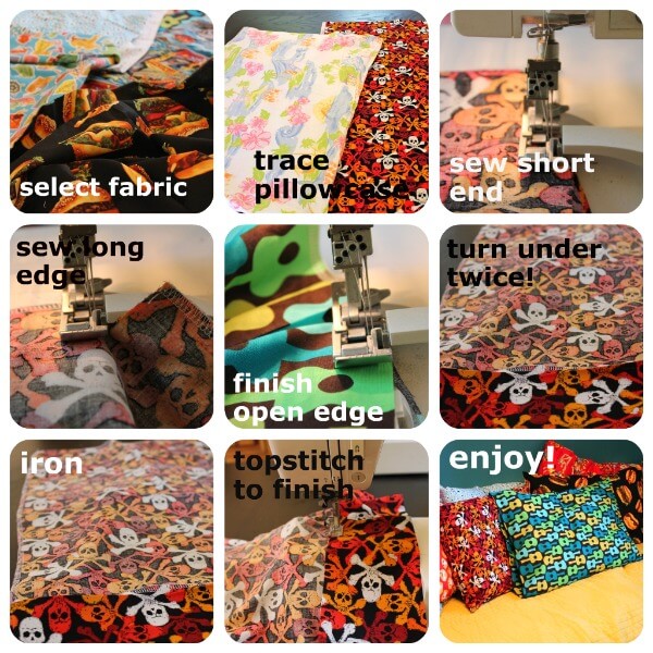 *If you use a regular sewing machine you will probably want to finish the raw inside edges of the pillowcase with a zigzag or overedge stitch.