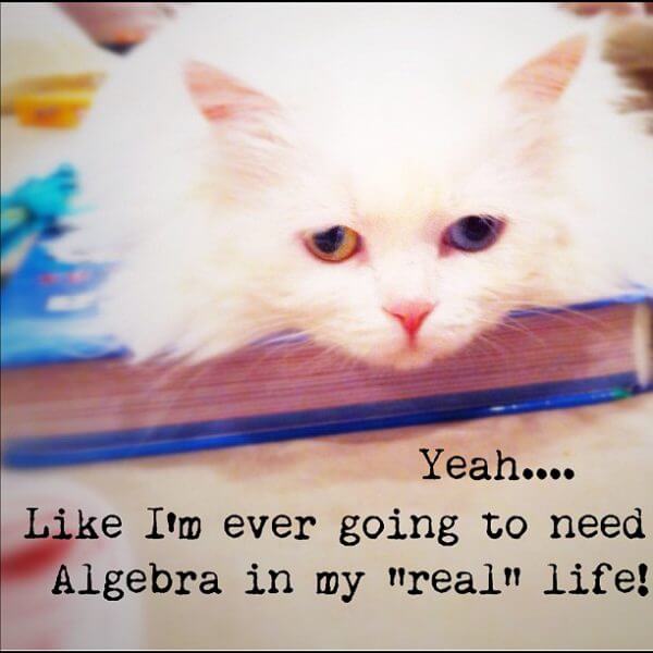 My daughter will be thrilled if she never sees an integrated fraction again. My cats are too busy plotting to eat us to worry about Algebra. If you don’t hear from me again their names are Beanie and Marilyn Monroe. Make them pay.