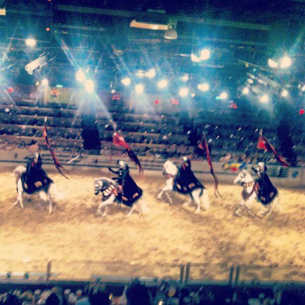 You with your hands while watching jousting tournaments based on old time games. The British accents were barely believable. The plot lines were corny. Yes, it was cheesy. But the horsemanship was awesome, the costumes were sparkly and I loved it. I didn’t even mind that I dripped chicken fat all over my best clubbing jacket.