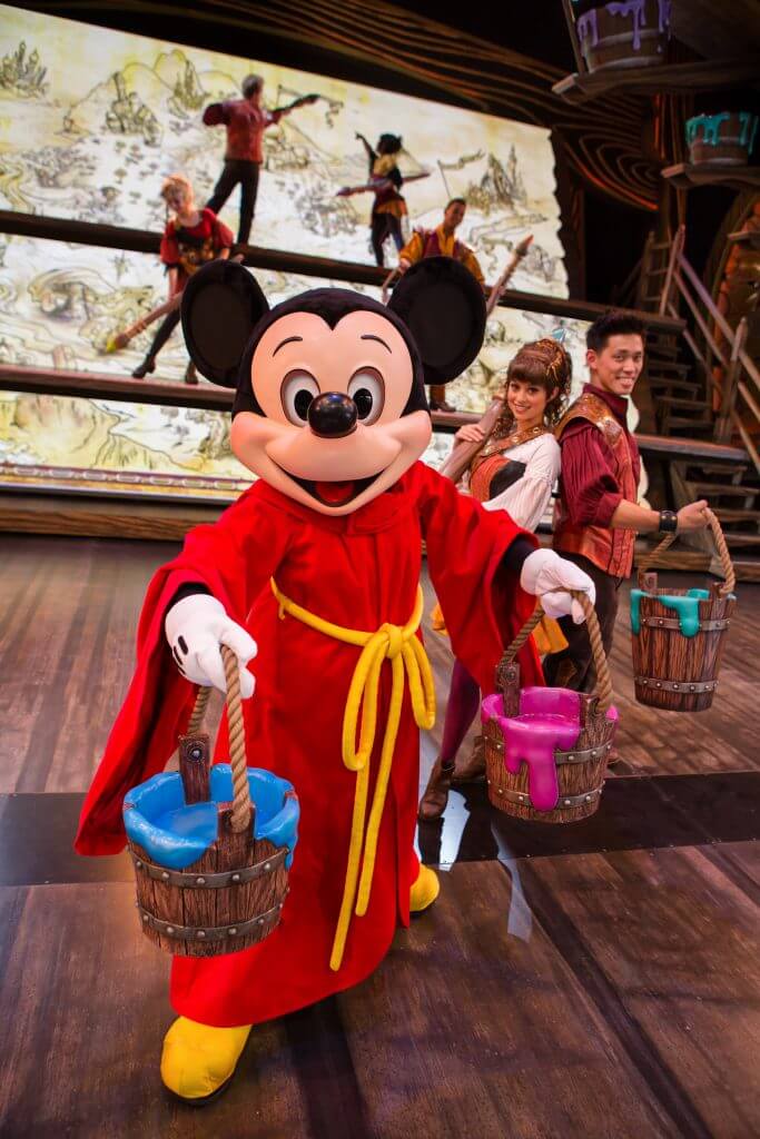 Yen Sid sets his mapmakers to work painting an enormous map, so large that it covers the width of the Fantasyland Theatre stage. The Map has the power to take dreamers to any place imaginable. When Mickey attempts to paint the one unfinished spot on the map, his adventures begin, taking him into fantastic worlds of music, color, excitement and beloved Disney characters.