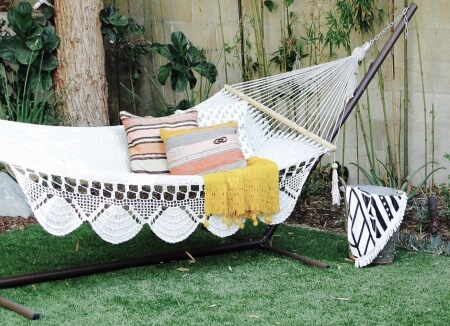 This Mexican Hammock is made from hundreds of cotton strings that are woven together to give you a soft bed that feels as though you are floating on air. This large hammock stretches to 3m wide and will comfortably fit 3 adults. And who doesn’t want to float on air with their two besties, right? I’m calling the middle though. I don’t want to fall out.