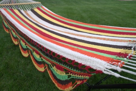 This is the original Mayan Hammock just like it used to be woven hundreds of years ago with undyed natural fiber threads. In this case, because of practicality and weather resistance, the manufacturer used nylon threads that are practically identical to natural fibers. Shhh we won’t tell and your lacy dreamy Hammock will last a lot longer. This one seems perfect for warm locations where you don’t want anything making you sweaty.