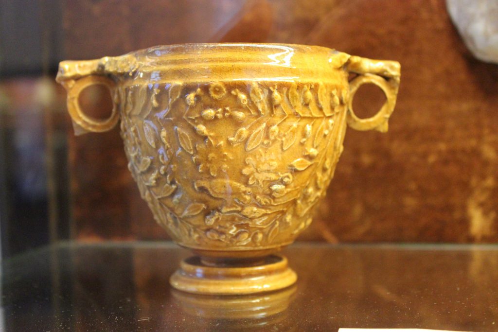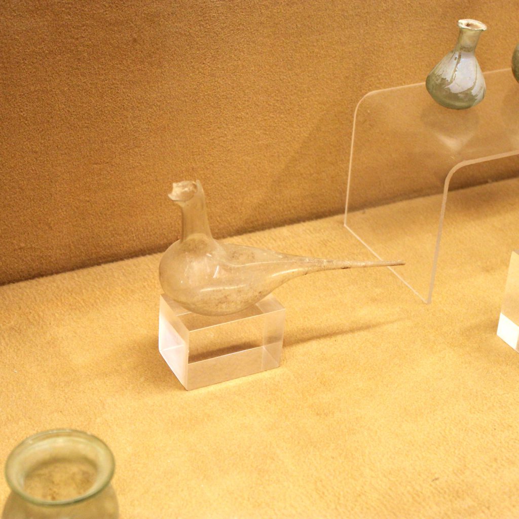 Perhaps the most poignant items were the glass ones, hand blown and beautifully made. Comparable to something we’d buy today. Hilaria told us about the different uses of items . Many were imported via common trade routes. Glass doves were perfume receptacles, most likely from Rhodes and broken not by accident, you had to break the neck to “open” the bottle.