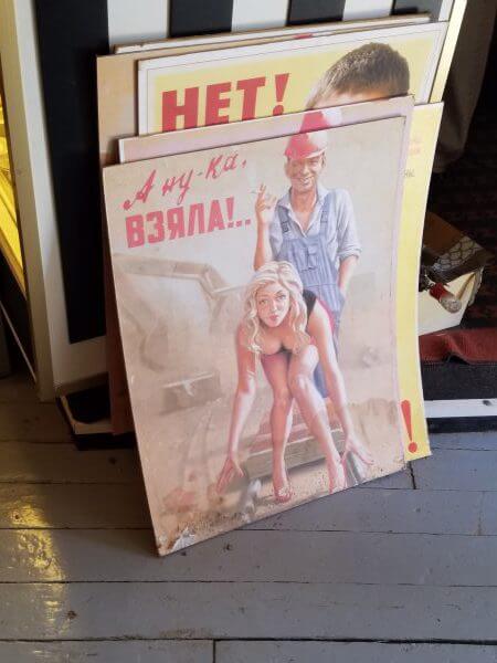 Outside, near the entrance, there is a makeshift Soviet Era “junk” shop, that is grateful for your business. We found a few trinkets here, including the exact same dolls we found in a Siberian orphanage during our adoption trip. There were some posters of questionable taste (see gallery) and lots of pins and buttons.