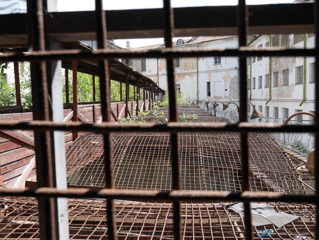Outside in the courtyard are reels and reels of razor wire and broken glass. You can find the “walking yards” here. These are dog-pen like outdoor cells with caged roofs where the inmates would be taken for a chance to get fresh air.