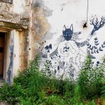 Somehow, there were stubborn weeds of beauty poking up thru all the decay. Some of the them, literal, wildflowers blooming in cracked cement. Local artists have also used the abandoned structure as a canvas for new images.