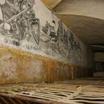 In one cell, a massive fantasy mural, drawn entirely in pencil spans the length of an entire wall. I’d guess at least 12 feet. This was considered a lucky cell to be confined to, as the resident tattoo artist was housed here. His pencil drawings are evidence of his skill.