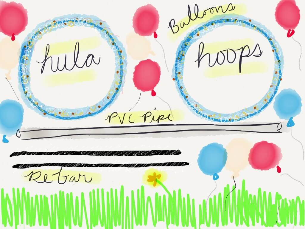 In my mind’s eye, I added Mickey mouse ears to the simple pvc balloon arch. A Mickey Mouse Balloon Arch! For the 4th of July! It would be easy. All you’d need would be a couple of hula hoops….