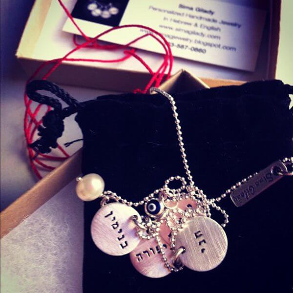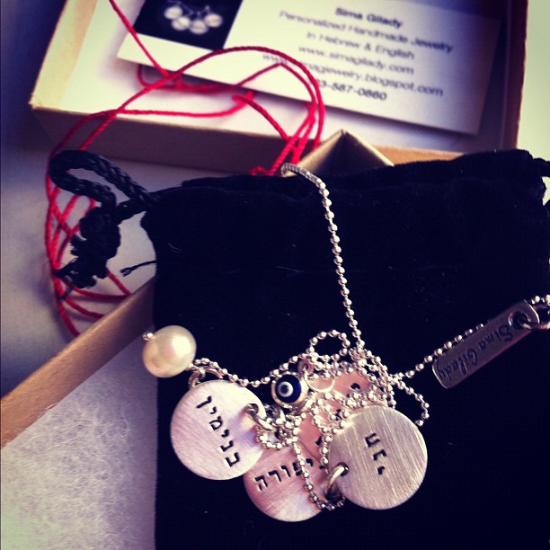 This is why I am especially happy to find the artful work of Sima Gilady. Hand stamped jewelry in both Hebrew and English. I’m in love with the jewelry she created for me for a review of the Sima Gilady Collection on Childmode. Click through for more photos and for a coupon code!