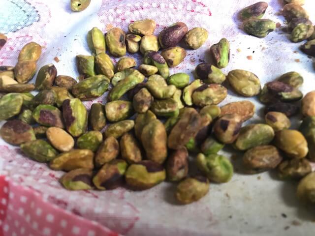 - 3/4 cup chopped roasted pistachios, skins rubbed off prior to chopping*