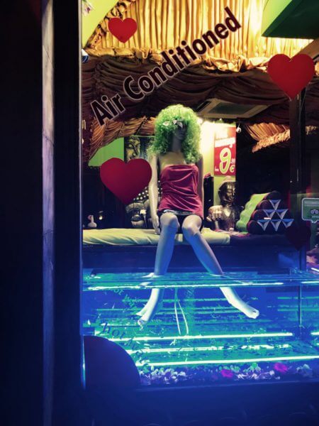 It is not just goods. There are services that seem off brand, as well. Men in Asian themed costumes beckoned me to come into massage parlors, where I might sit in a massage chair while sticking my feet in a fishtank.