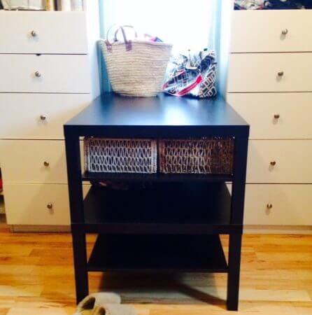 It happened again. Spontaneous Ikea Lack hack. We have a knack for Lack hacks. My Master Bedroom closet is rather large, even for a walk in. Most of it is (thankfully) full of built ins, and yet I still run out of storage space. In So Cal most homes don’t have basements and attics….