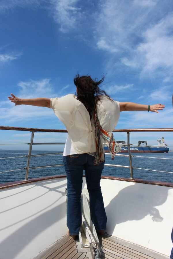 I could not resist standing on the bow of the boat to feel the cool ocean breeze.