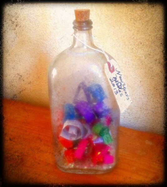 Write out your wish, sign & date, and pop in the bottle. We intend to open and revisit a decade of wishes in ten years time. Man… How I wish I’d started this ten years ago! It would be so fun to go through the wishes of New Year’s past.